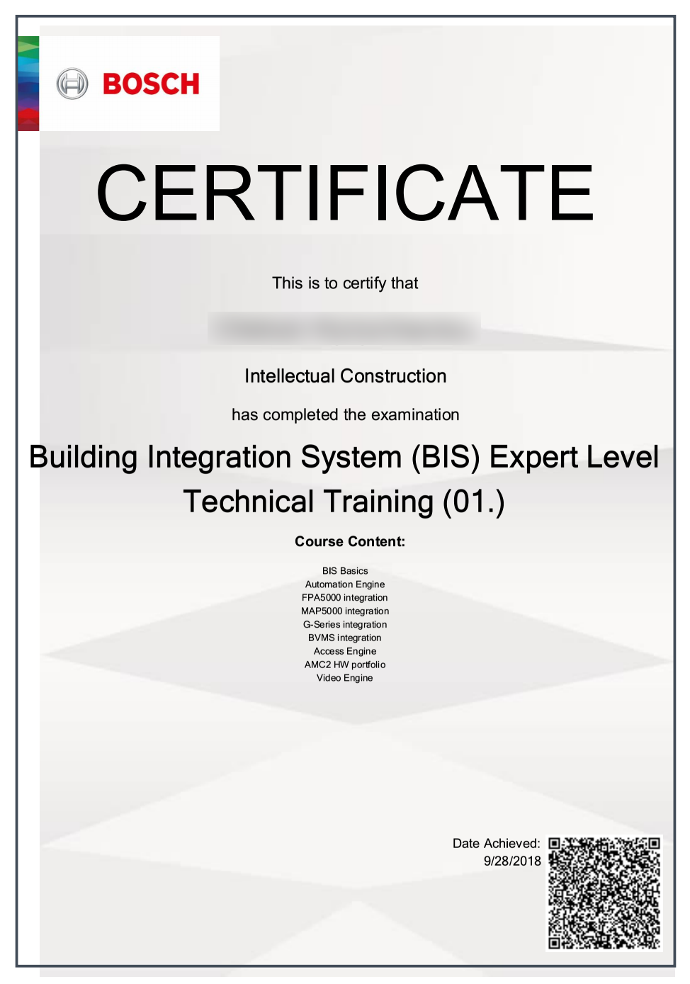 В 2016 году на рынке услуг инсталляций систем безопасности и IT-инфраструктур начал работу интегратор полного цикла «Intellectual Construction». Деятельность компании направлена на реализацию комплексных IT-проектов в государственных и коммерческих организациях.